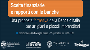 Scelte finanziarie e rapporti con le banche: è il tema del progetto di educazione finanziaria dedicato agli artigiani e i piccoli imprenditori, promosso da Banca d’Italia in collaborazione con Confartigianato e Cna, che verrà presentato lunedì 11 aprile, nel corso di un evento che potrà essere seguito in diretta streaming a questo link: